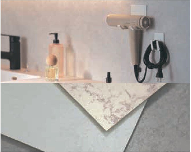意匠性・耐久性・施工性に優れたメラミン不燃化粧板にマグネット機能を追加。掲示用マグネット、フックや小棚などのマグネット収納を使用して、壁面をスマートに有効活用できる。住宅・非住宅に対応。大理石調・コンクリート調の3柄。