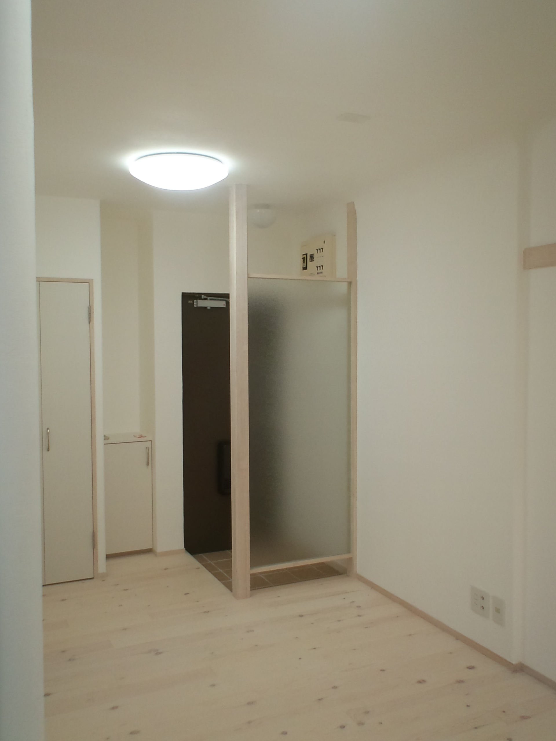 玄関前には、簡単な間仕切りを設置した。